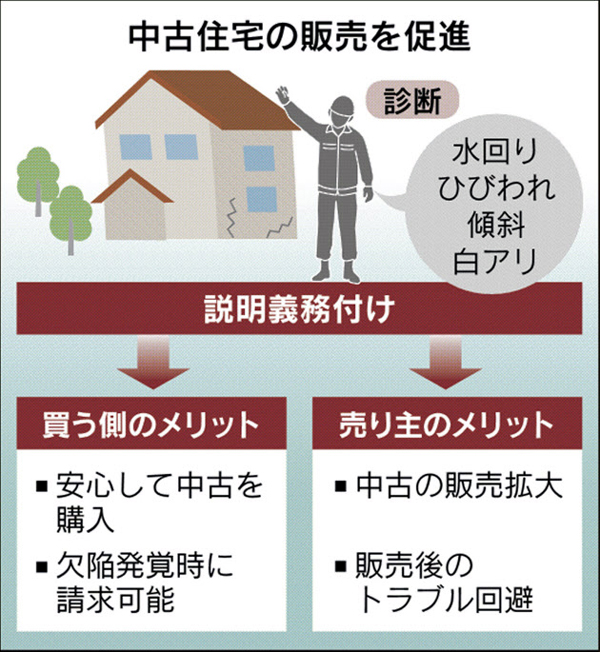 具体的には法改正で、契約前に確認する重要事項説明書に住宅診断の項目を設ける。