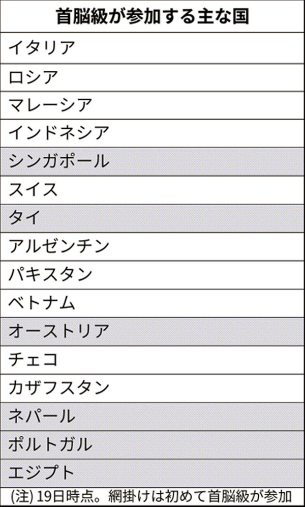 上回る37カ国の政府首脳や国家元首が参加する。