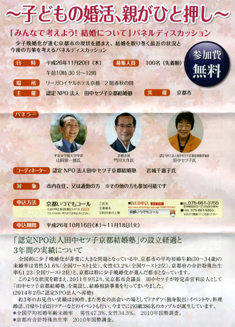 人生の良きパートナーを探すお手伝い『ドクダツ親の会』への参加を呼びかけています。