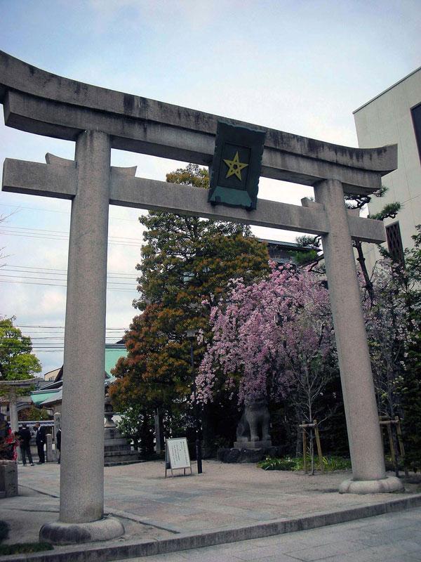 晴明神社の神紋である晴明桔梗印(五芒星)は、天地五行を形どり、